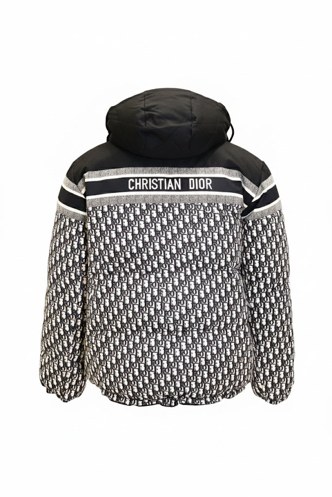 Make an unmistakable statement this season with this bold, hooded puffer jacket from D-*-o-r. A true piece of wearable art, this jacket marries high-loft warmth with the brand's most recognizable signature—the D-*-o-r Oblique Monogram pattern.