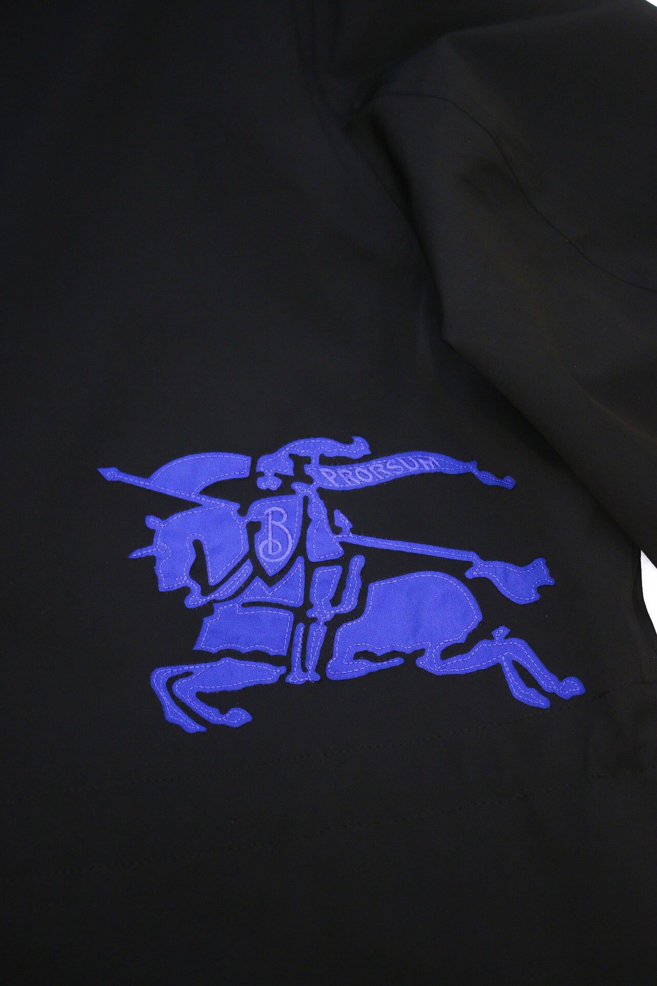 Detail: Contrast white "Burberry" sans-serif logo printed on the left chest.