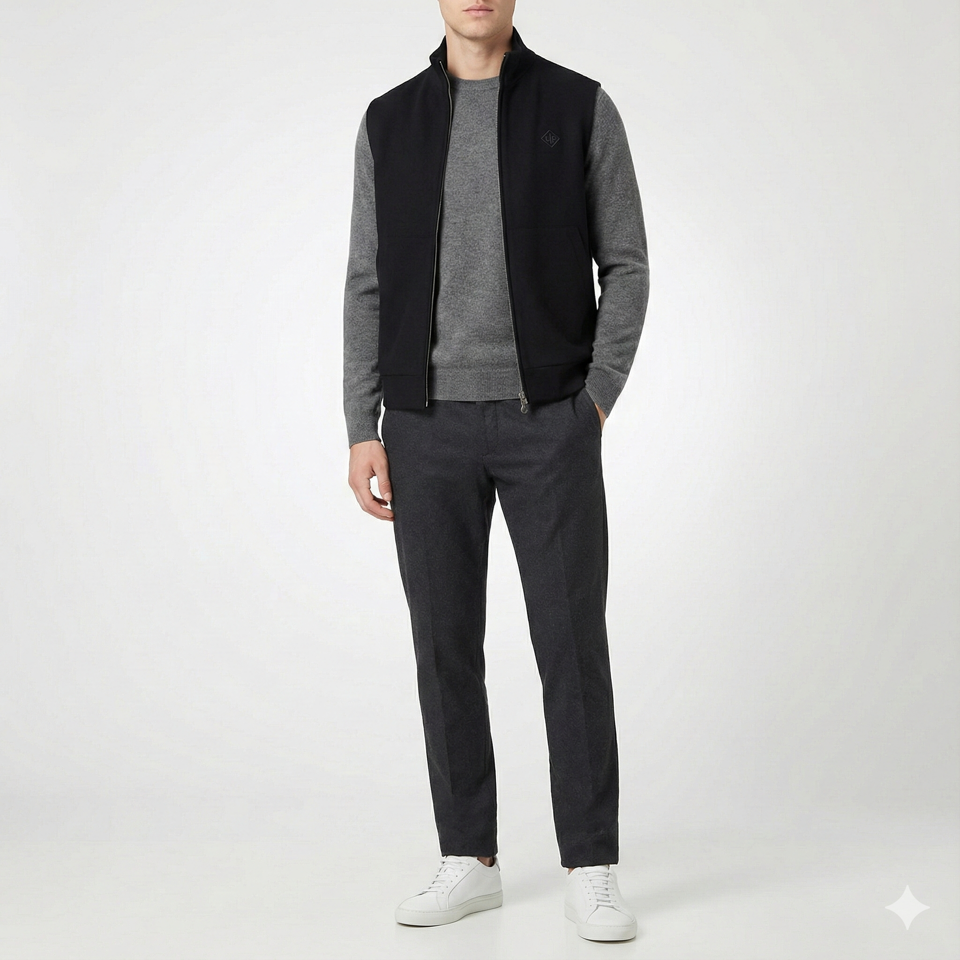 Introducing the Essential Knit Vest, a pinnacle of understated luxury and transitional comfort. Drawing inspiration from the world's most exquisite textile houses, this vest is crafted from an incredibly soft blend of pure cashmere and/or silk, delivering a hand-feel that is both sumptuously soft and lightweight.