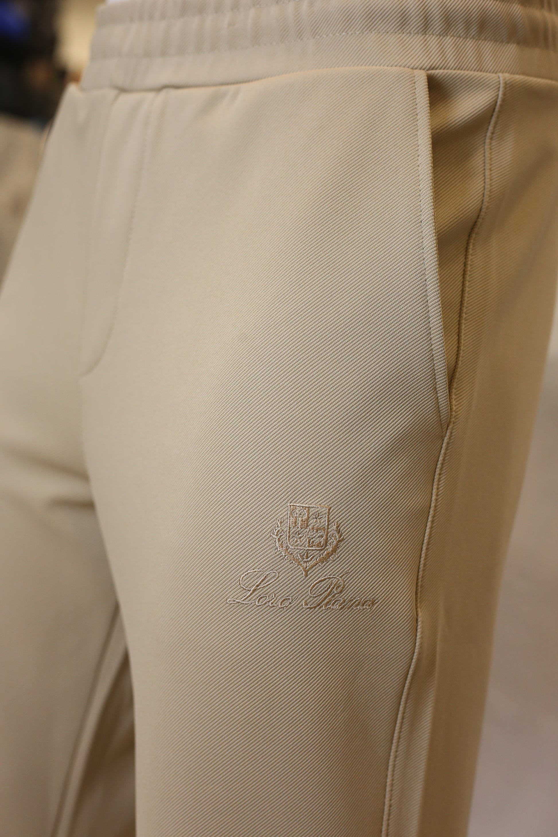 Adjustable Luxury: The waistband features an elasticated interior and a high-quality drawstring (note the embroidered Loro Piana-style logo on the beige version), allowing for custom comfort while maintaining a sleek, flat profile when worn.