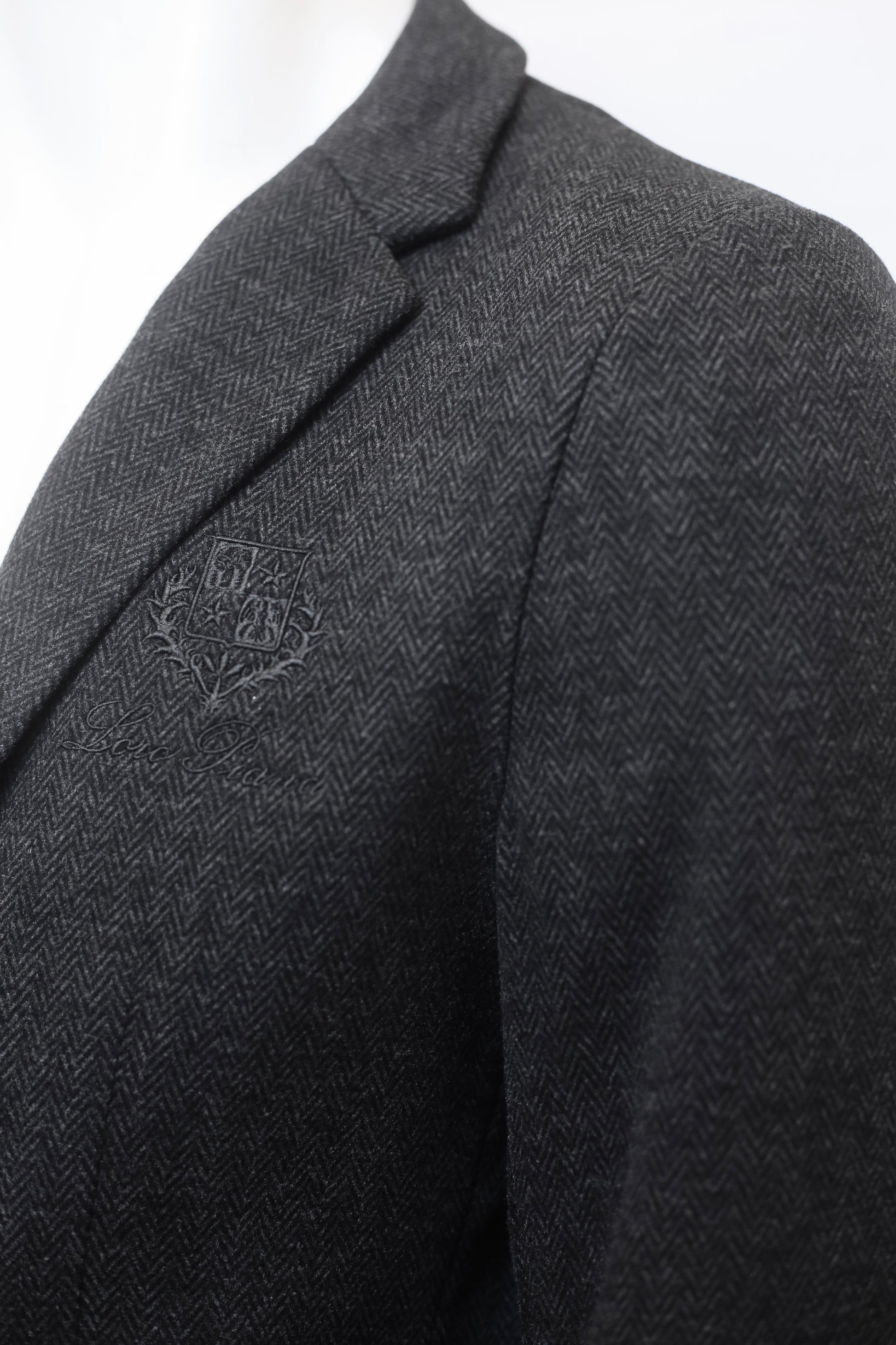 Crafted from a rich wool and cashmere-blend knit, the fabric features a sophisticated micro-texture [Verify: e.g., Herringbone or Birdseye weave], providing visual depth while remaining sumptuously soft. The blazer is unstructured with a soft shoulder, allowing for maximum freedom of movement and a relaxed, natural drape that is synonymous with Italian elegance.