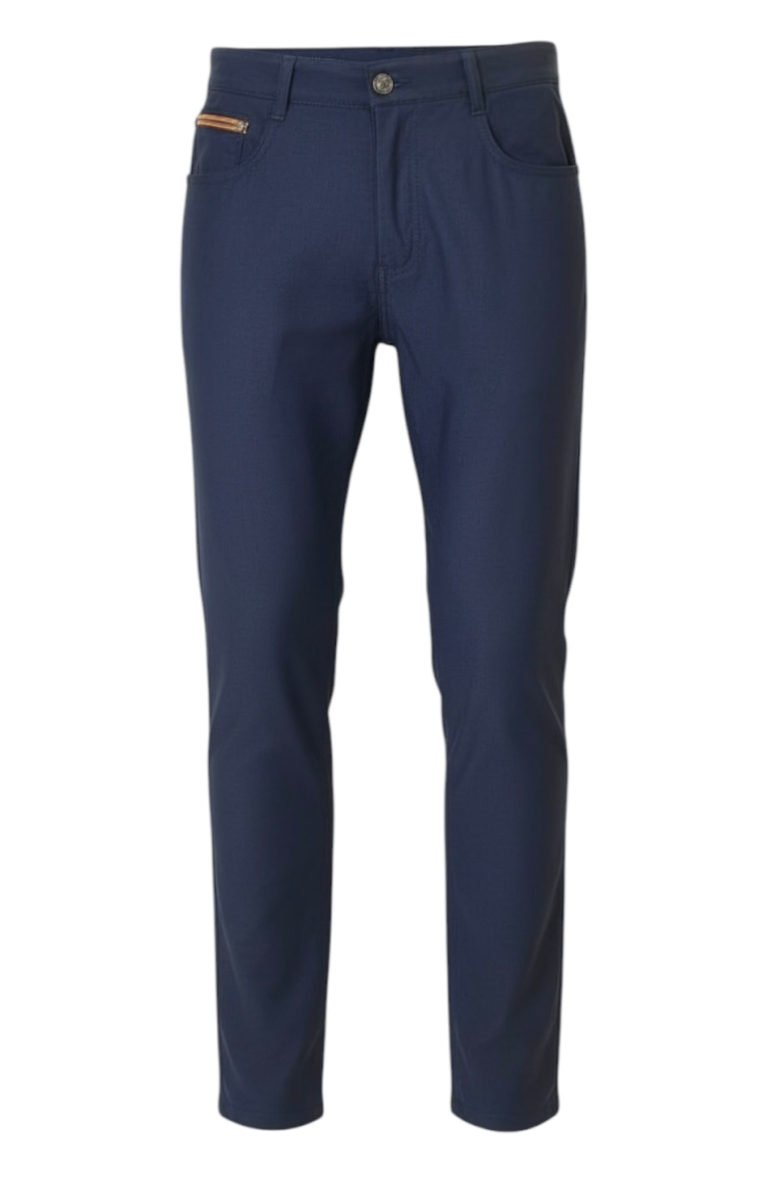 Far superior to standard chinos, this pair features a sophisticated fabric blend that moves with you, making them ideal for travel, a demanding workday, or an elevated weekend. The signature five-pocket construction is updated with subtle, refined details, including a distinctive zippered coin pocket, adding a touch of contemporary flair.